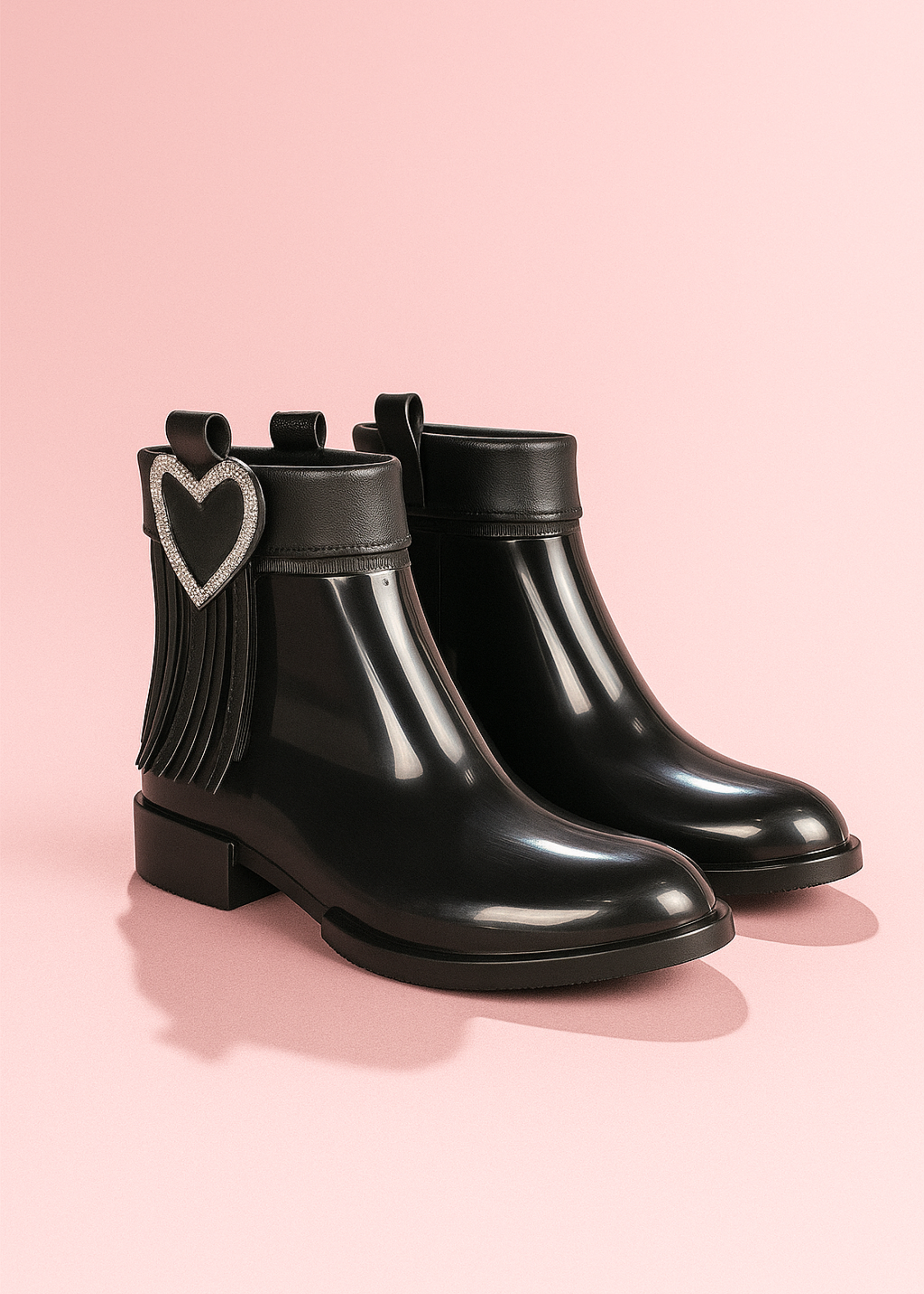 El PVC es flexible, fácil de limpiar y protege tus pies de la lluvia mientras la suela ofrece buen agarre para caminar con seguridad. Úsalas con jeans, leggings o looks más casuales para un toque Lovely incluso bajo las nubes.