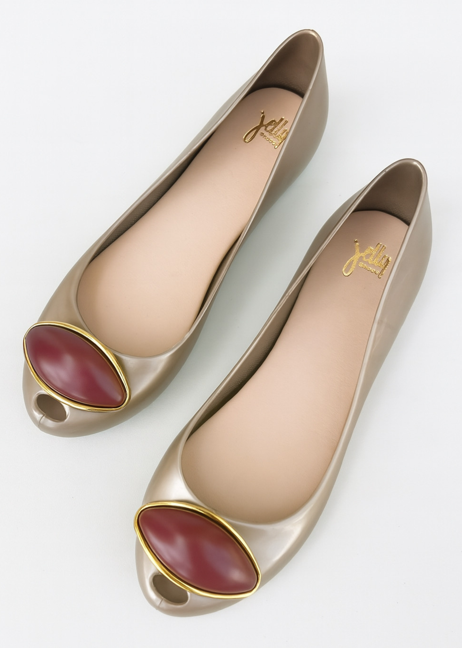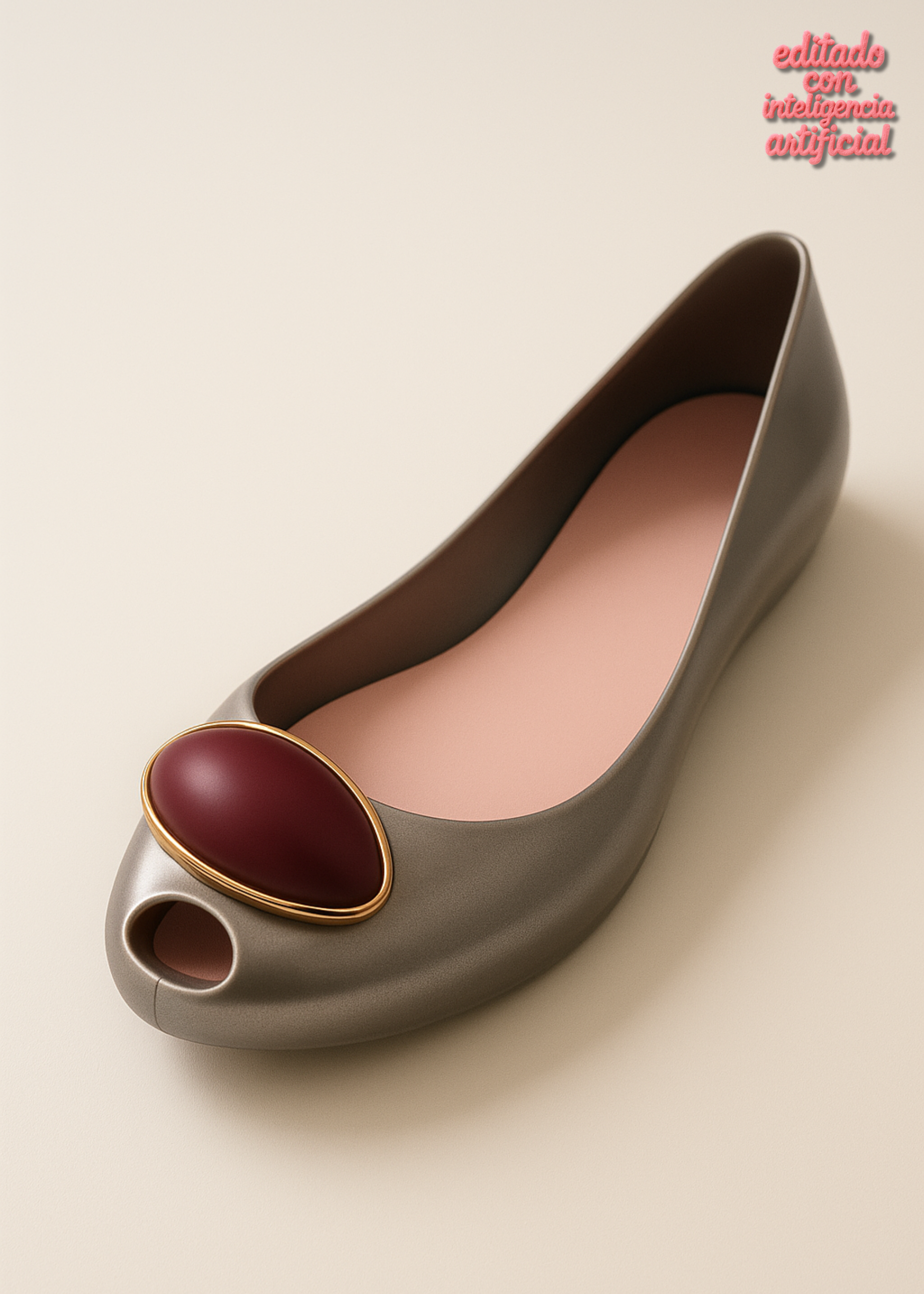 Descubre las Gabriela Iconic, unas flats en PVC con diseño peep toe que combinan elegancia y comodidad. Con un herraje estructural con marco dorado, estas flats son perfectas para elevar cualquier look.