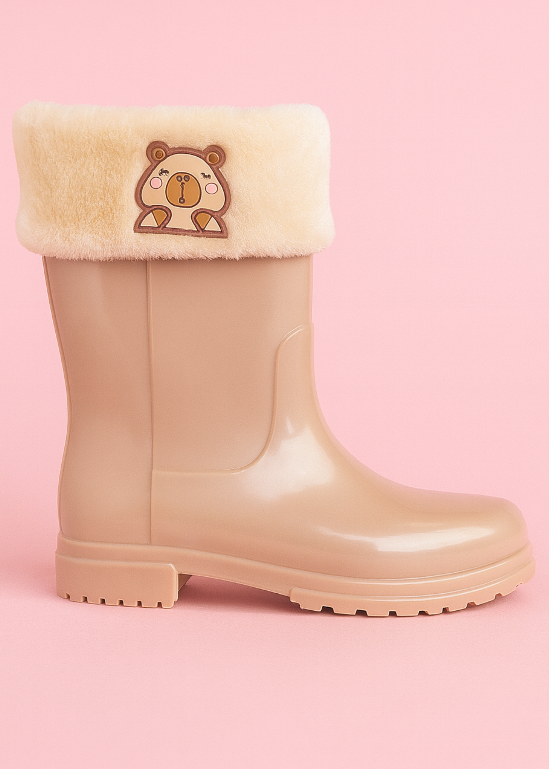 Mantén los pies de tu pequeño secos y con estilo en días lluviosos. Nuestras botas impermeables para niñas cuentan con un forro de peluche y un tierno aplique de capibara, que combina comodidad y diversión.