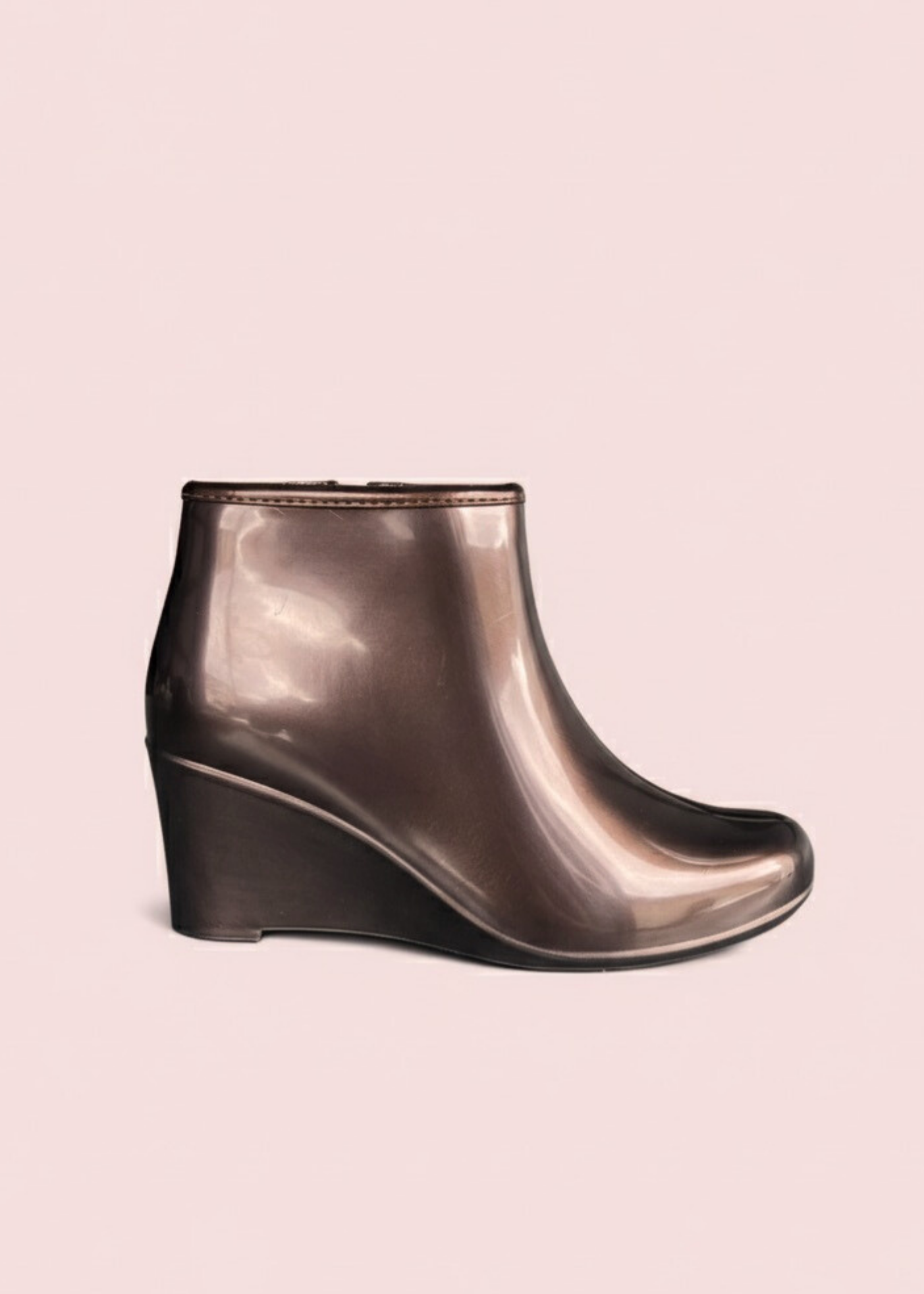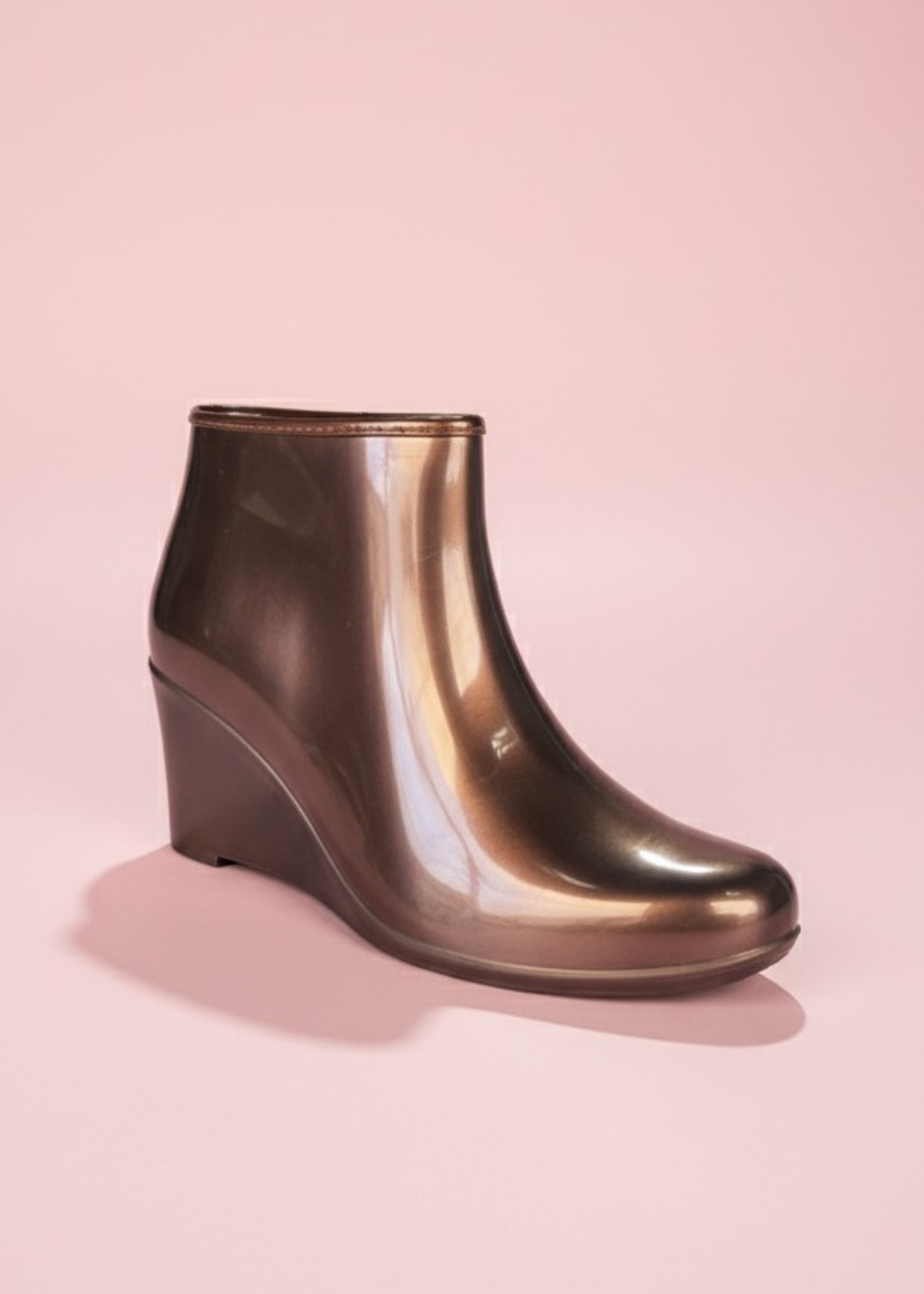 Descubre nuestros botines San Miguel, fabricados en PVC. Su diseño moderno con acabado metalizado aporta un brillo elegante, mientras que la cuña integrada ofrece altura y comodidad en cada paso. Resistentes al agua, fáciles de limpiar y perfectos para cualquier clima, estos botines son la combinación ideal de estilo y funcionalidad.
